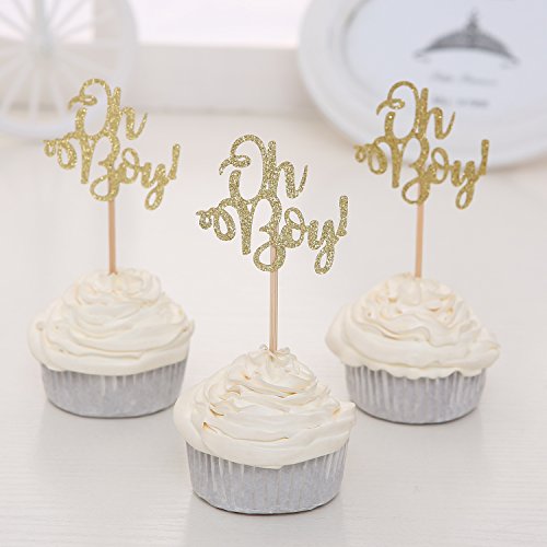 Set of 24 Golden Oh Boy Cupcake Toppers Party Decors Baby Shower Decors - by Giuffi