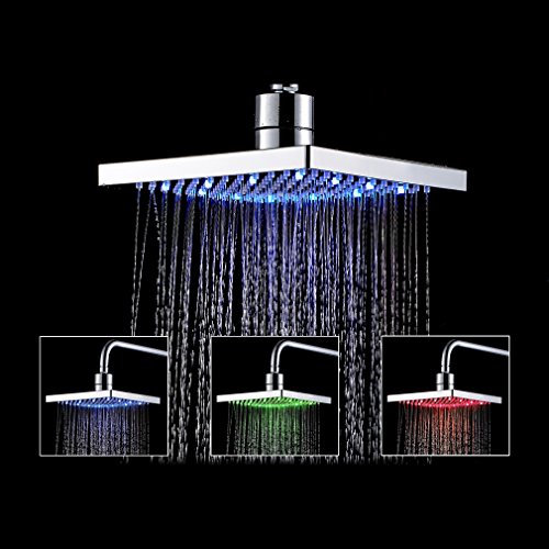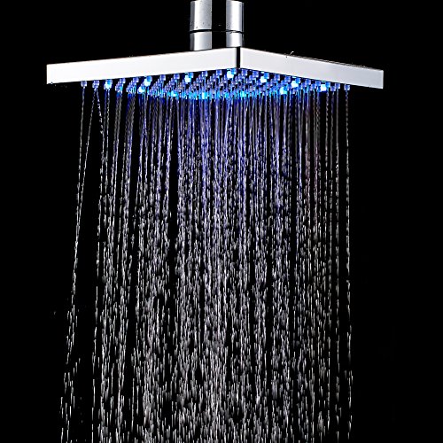 Rain Shower Head : LED Shower Head features 8 inch drenching high power rainfall shower experience.Perfect shoulder-to-shoulder flow coverage,easy to clean jets! This fixed mount showerhead is powered by Running water, no batteries needed.Brightness is such enough even no other lighting fixtures need.