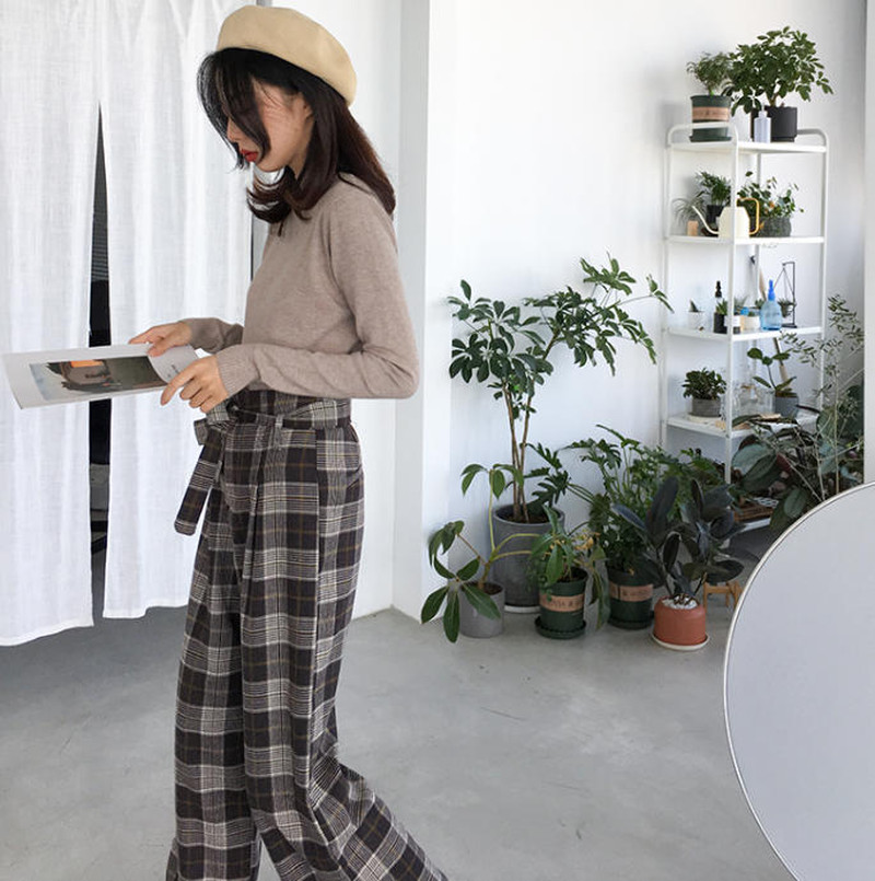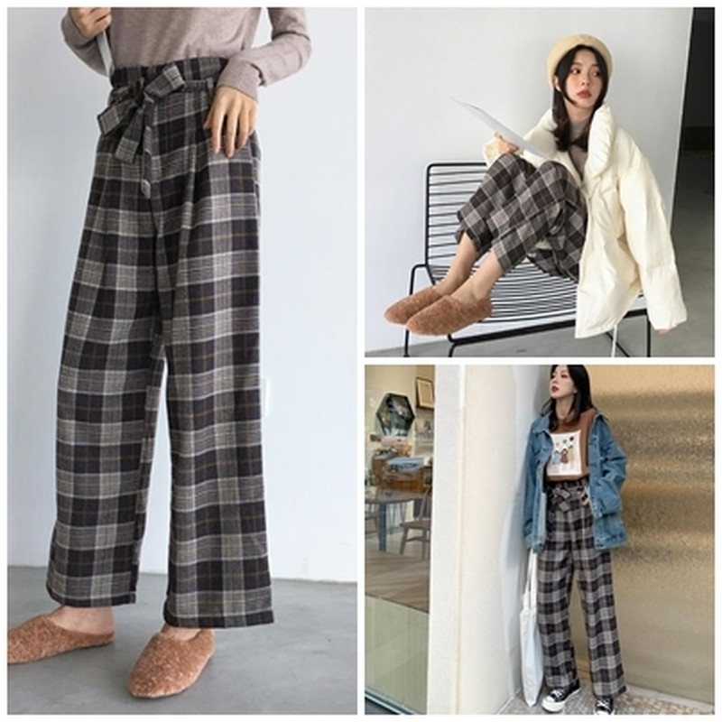 ♢ポイント♢ ガーリーに着こなせるワイドパンツ。 無地のトップスとの相性抜群◎