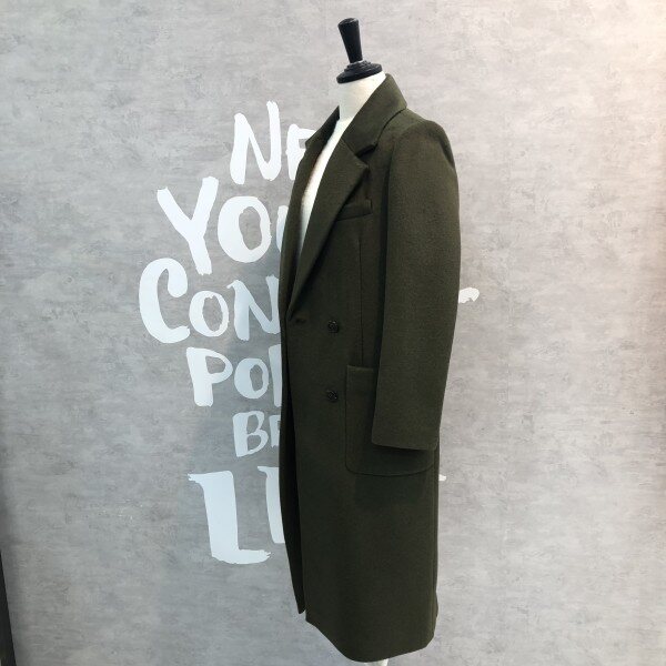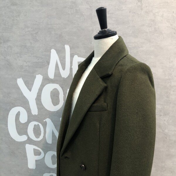 깊은 솔리드 컬러감이 멋스러운 여유있는 더블 브레스트 실루엣의 울코트입니다