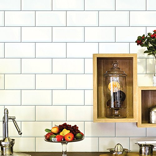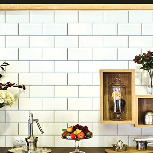 TWO LARGE WALL DECALS: Includes two 25" x 38" white tile peel and stick sheets, a convenient way to spruce up any boring wall