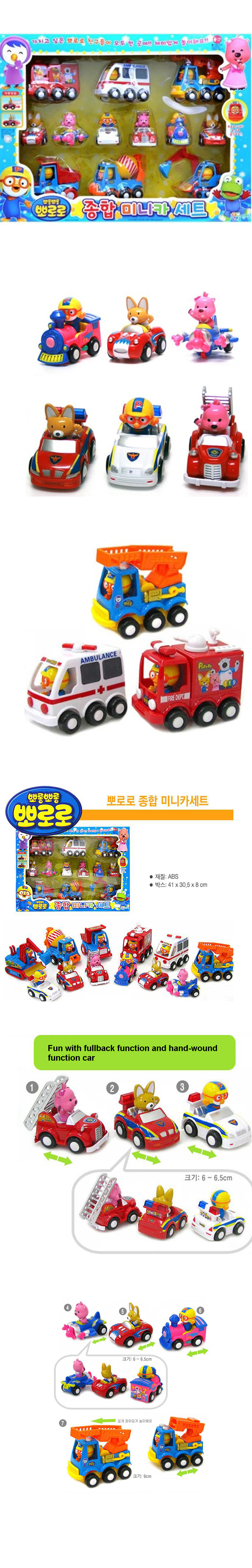 Youngjin Pororo Pull back cars a variety of cars 12 pcs mini cars and Pororo friends together for Children Gift
