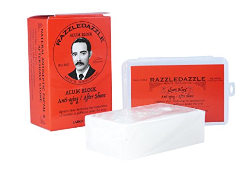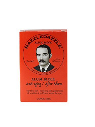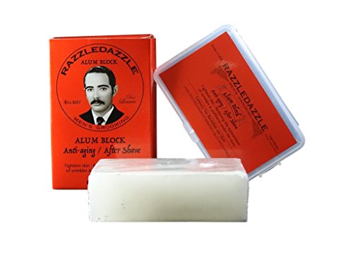 Studio : RAZZLEDAZZLE Men's Grooming Publisher : RAZZLEDAZZLE Men's Grooming Binding : Misc. Product Description Our pure Alum Block is used as an everyday tightening of the skin that naturally reduces lines and wrinkles. Alum Blocks are all natural potassium crystal cubes formulated from naturally occurring Alum deposits. They're antiseptic, making this product a shaving alum block as well -- great as a toner and aftershave. Hypo-allergenic, they are suitable for all skin types. Apply to freshly shaved skin to cool down razor burn instantly, cure minor nicks and blemishes and close open pores. This boon for skin will leave behind smooth and even skin every time! They even work with electric razors! Try it and you won't believe the results! 0