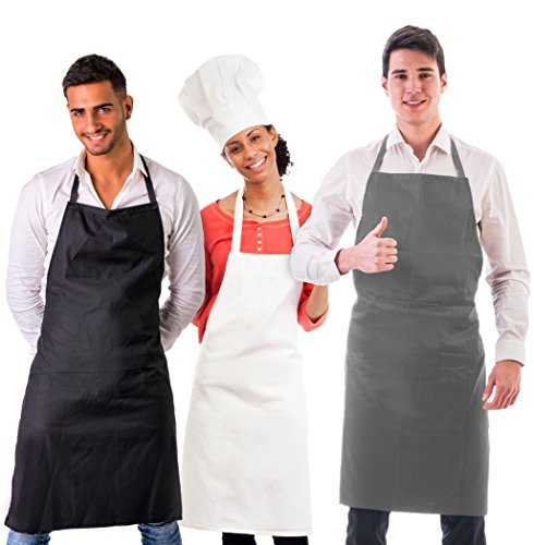 Professional Series Bib Apron 3 pack with Cell Phone and Recipe Card Pocket Black White Gray Restaurant Quality Apron