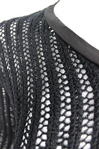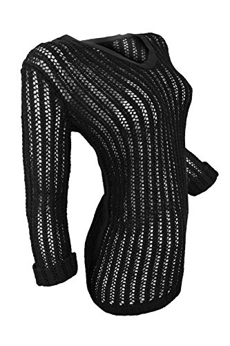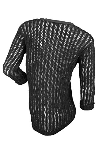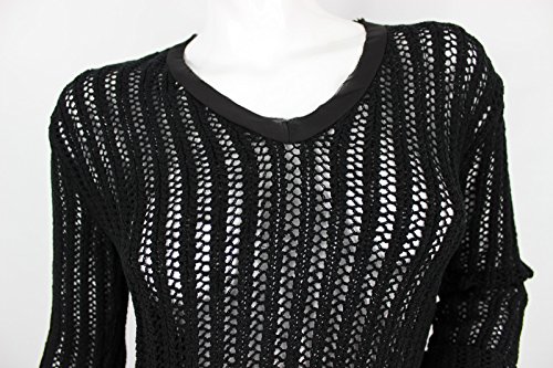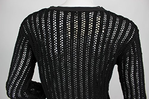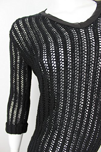 This black classic fit silhouette knit top from Two by Vince Camuto is crafted in a breathable and soft cotton acrylic blend and is designed with mesh stitch knit pattern, woven taped V neckline, raw edge bracelet sleeve with roll-up cuffs and rib knit hem