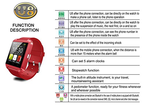 -. Title : Alike U8 Bluetooth Smartwatch Wristwatch Touch Screen for IOS Android Smartphone black)
