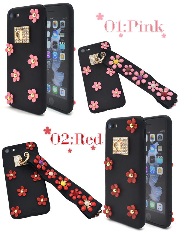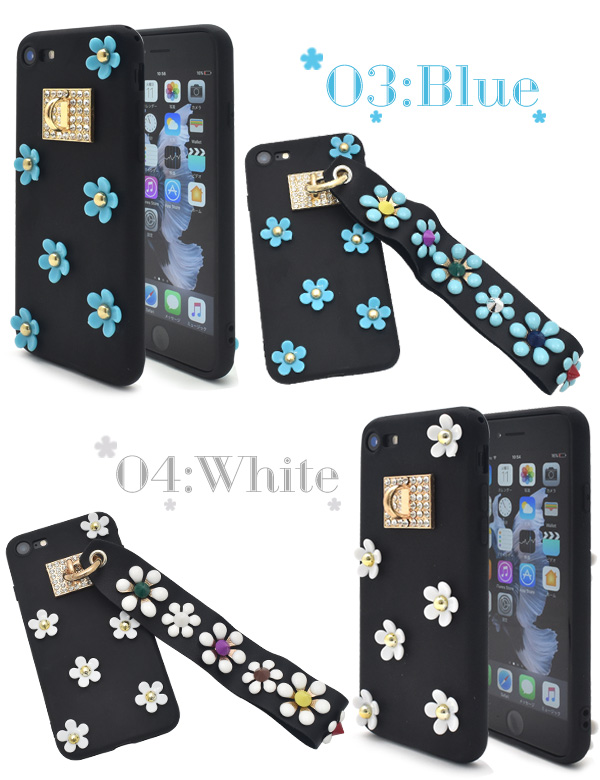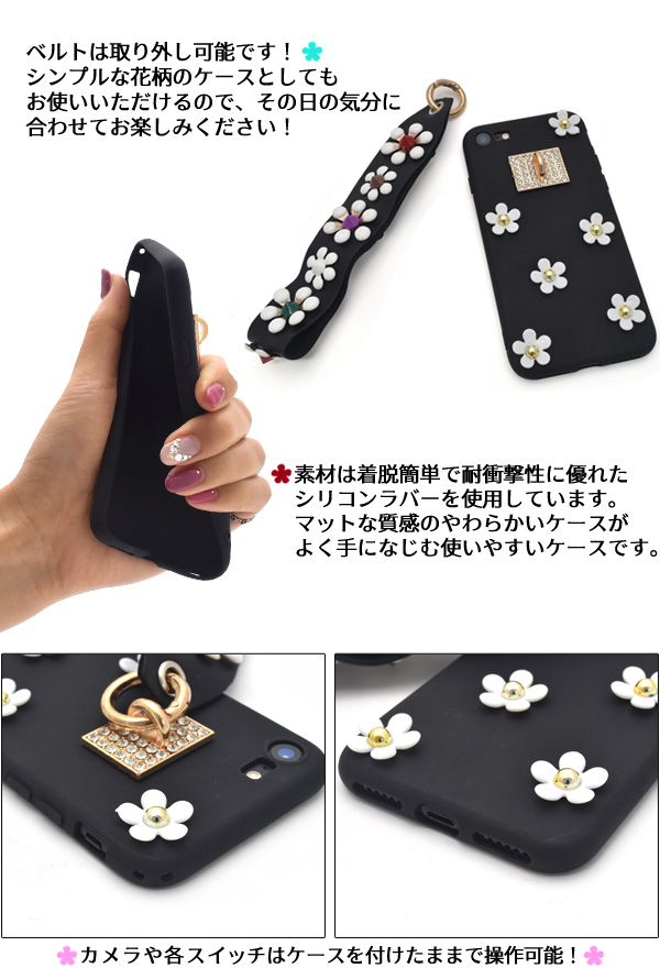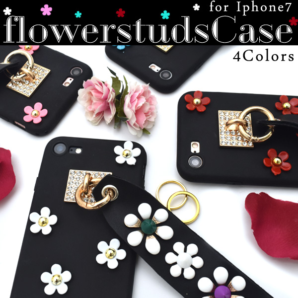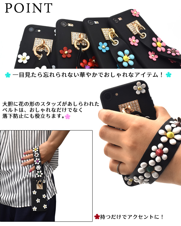 ベルト付き!iPhone7用カバーフラワースタッズケース!