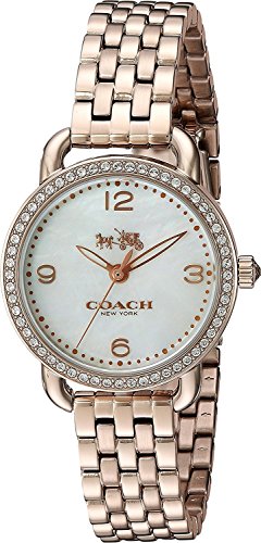 Typically casual, the Delancey watch dresses up with a Swarovski-set bezel and a bright carnation gold finish. Delicacy of design belies the toughness of this shock- and water-resistant timepiece.