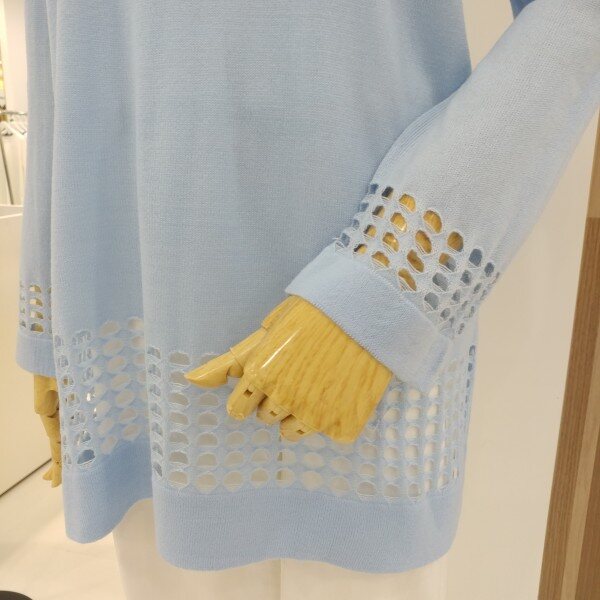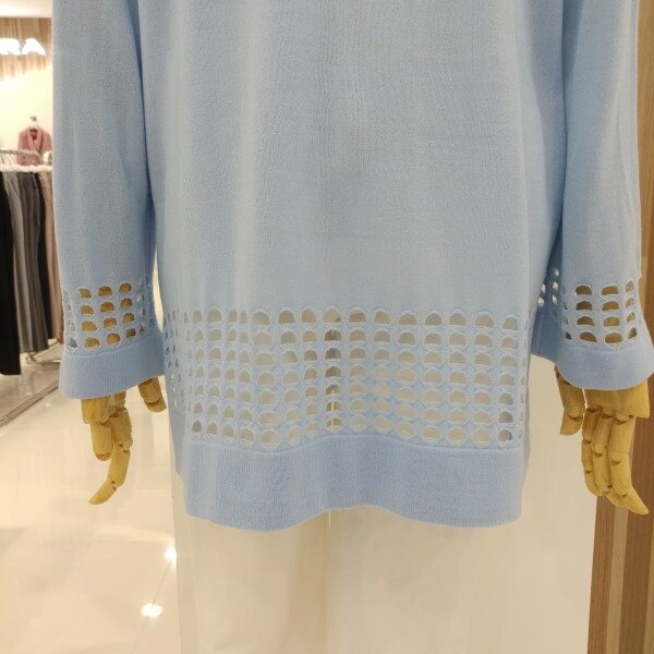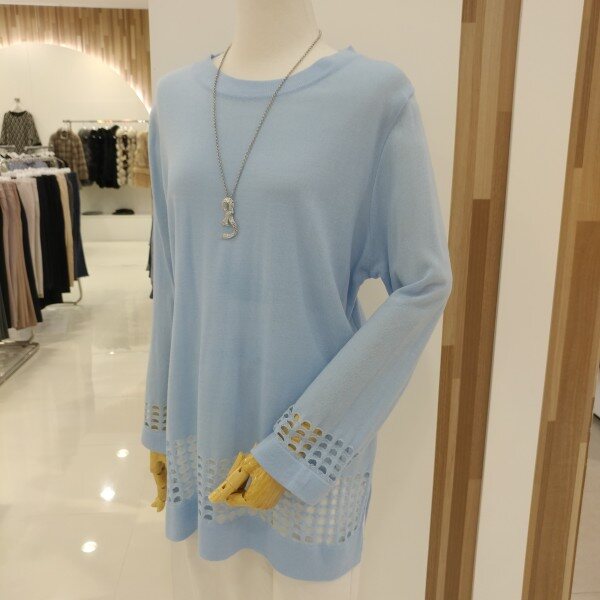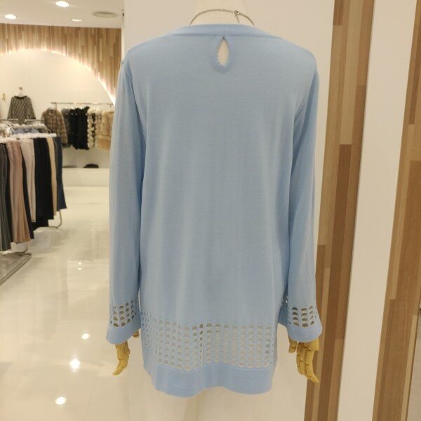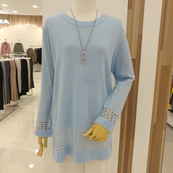 소프트함이 돋보이는 니트로 롱한 기장감과 더불어 소매와 하단의 펀칭느낌의 자임이 있어 세련되고