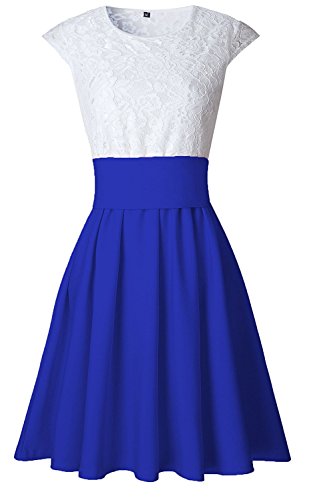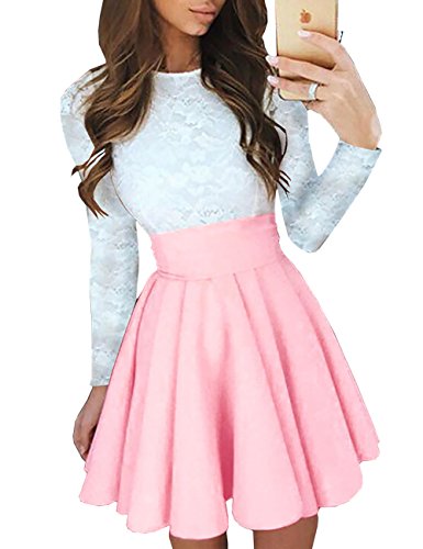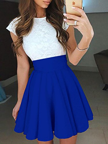 Ninimour Women's Trendy Splicing High Waist Pleated Lace Mini A-line Dress 100% New Brand,High Quality
