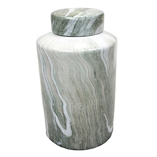Benzara Beautifully Designed Ceramic Covered Jar, Green/White