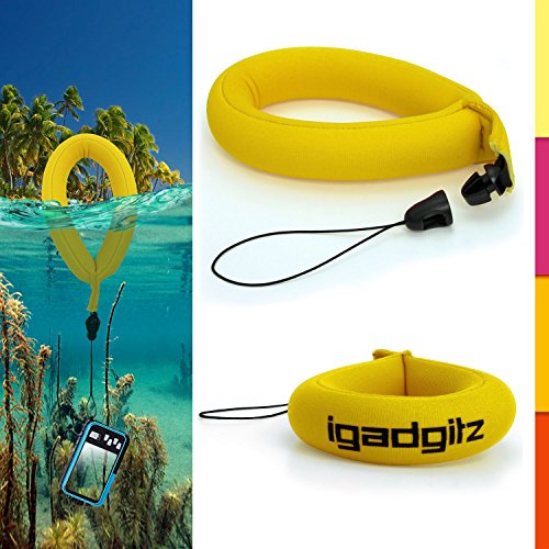 iGadgitz 1 Pack Standard Yellow Waterproof Floating Wrist Strap suitable for use with Olympus Tough TG-310, TG-320, TG-610, TG-620 iHS & TG-630 iHS Cameras