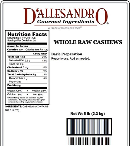 -. Title : Whole Raw Cashews, 5 Lb Bag