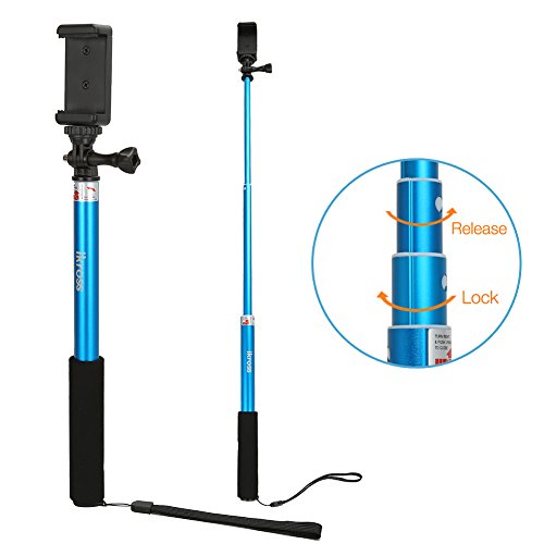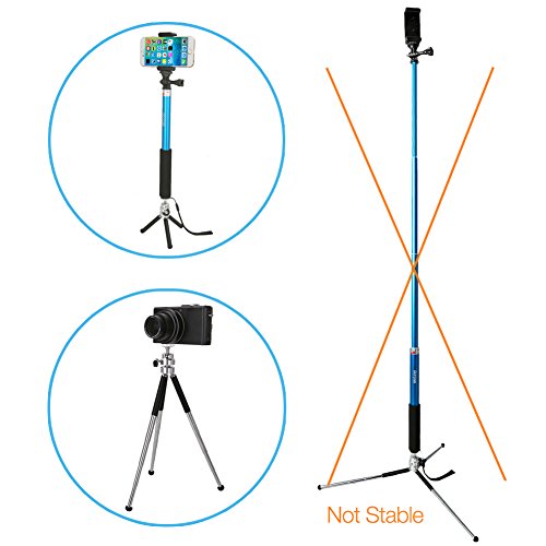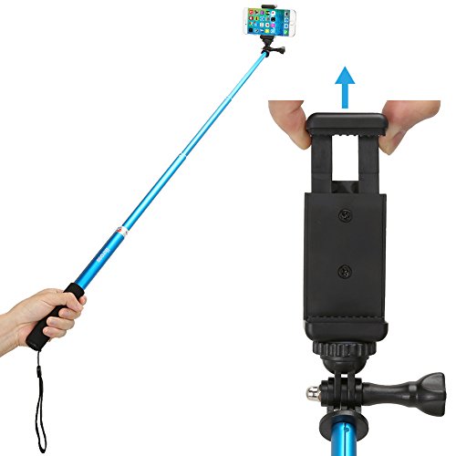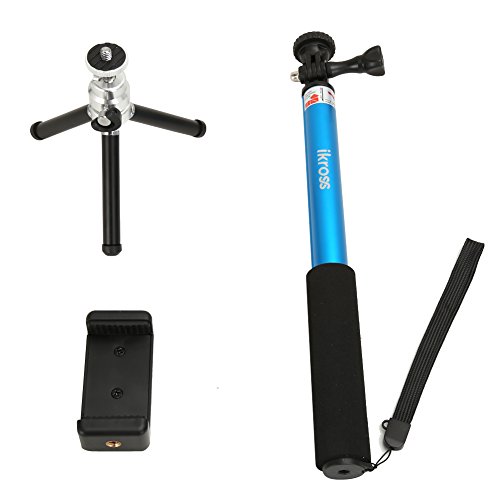iKross 3-in-1 GoPro Hero / Smartphone / Digital Compact Camera Monopod Selfie Handheld Extendable Stick Pole with Included Mount Holder & Mini Tripod - BlueThe versatile iKross Selfie Monopod with Tripod is an essential travel accessory. Easily useable as a camera hand grip or extend to use as a selfie stick. You can even connect the selfie stick to the included mini tripod for stable self or group photos. The tripod adjustable ball head easily locks and allows multiple angles shooting with 180 degree positioning.