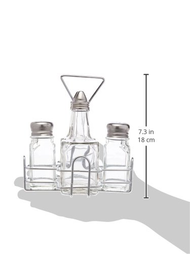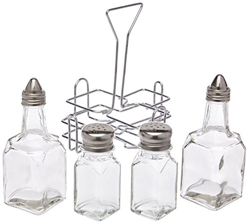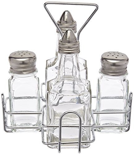 New Star Foodservice 22209 Holder with 2 Square Salt and Pepper Shakers and 2 Oil and Vinegar Cruets