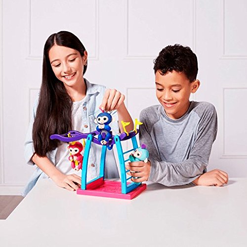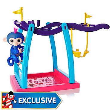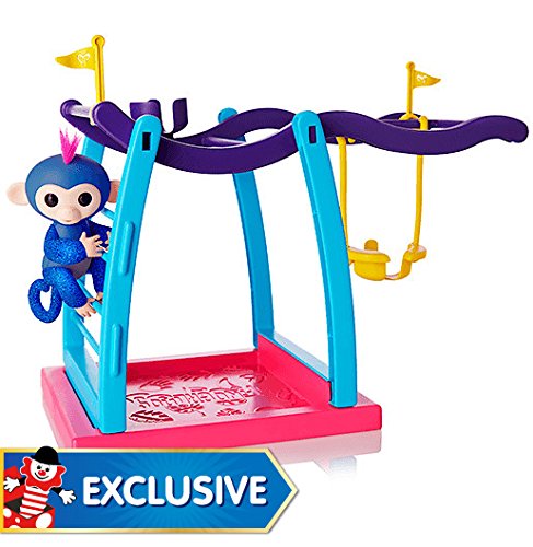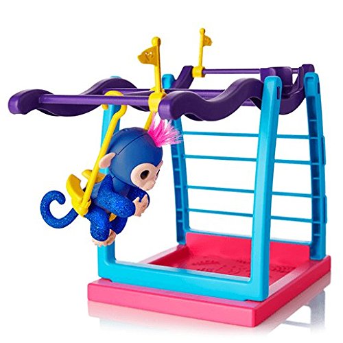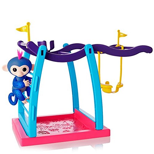 Exclusive UK Import - Not Sold in USA Right side up or upside down, this play set is the perfect place for your Fingerlings pets to monkey around! This monkey bar and swing play set includes Naima - a cute, exclusive, Glitter Blue Fingerlings Baby Monkey. Like all Fingerlings Baby Monkeys, Naima loves to interact with you - responding to touch, sounds, and movement with cute monkey babble, blinking eyes, and head turns. When Naima is not holding onto your finger, she will love playing in her play set. You can hang her by her tail on the monkey bars, push her back and forth in the swing, or have her play ""king-of-the-castle"" from the seat at the top of the structure. The seat and swing feature specially designed cut-outs to fit a tail, so Liv and your other Fingerlings Baby Monkeys remain safely seated while you play! This Fingerlings playset's ideal for ages five and up. Please note: 4 x LR44 batteries are included. What's in the box? Playset FingerlingFeature