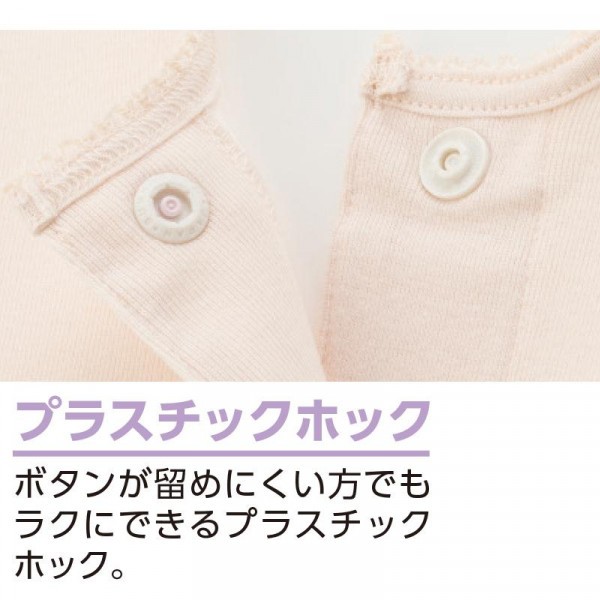 ボタンが留めやすく、大きめの袖ぐりで脱ぎ着もしやすいのが特徴です。