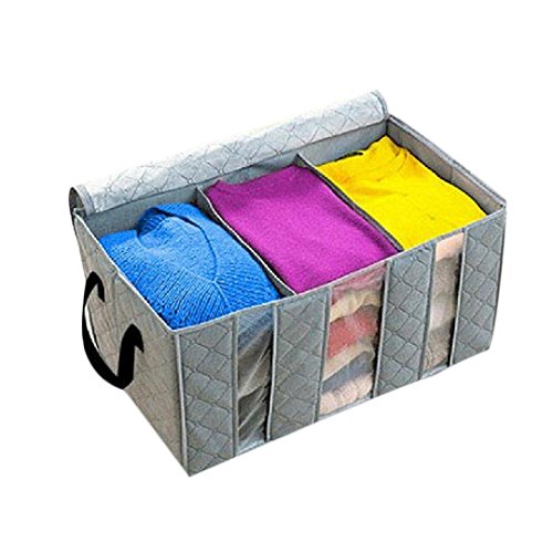 65L Foldable Storage Bag Clothes Blanket Closet Sweater Organizer Box Anti-bacterial Breathable Bamboo Charcoal Grey