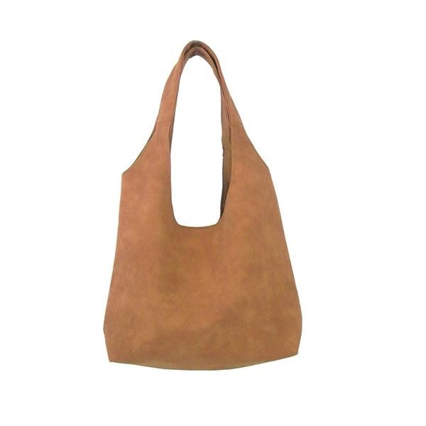 合皮の質感が気持ちの良いバルーントート。内側には小物の収納に便利なファスナーポケットと、パッチポケット付き。