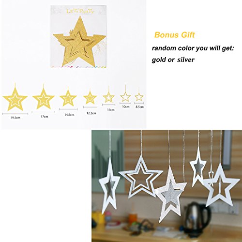 - FREE BONUS:a set of Hanging Glitter paper garland Stars for free gift within the package. The corlor of the hanging star ornaments decorations is shipped at random(golden or silver)