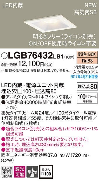 ●寸法(mm):埋込穴□100・埋込高80