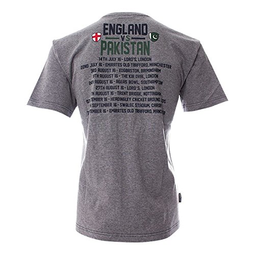 Studio : England Cricket Publisher : England Cricket Product Description Quality series supporters T-shirt. 100% cotton with subtle navy contrasting stitched trim, small embroidered England Cricket logo and large series print logo on the front. All the dates and venues of the tour printed on the rear. 0