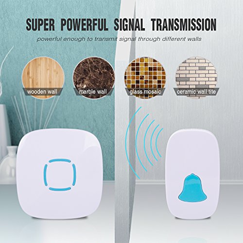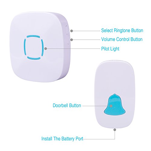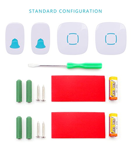 【Easy & Quick Installation】NO special tools needed to install our wireless plug in doorbell! Just plug the receiver into an electrical outlet, insert the INCLUDED Battery (12V 23A) and mount the push button base on the door frame with double-sided adhesive tapes or the screws INCLUDED in our kit! Ready to go in less than 5 minutes, even an 8 year old can do it