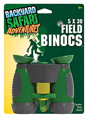 Backyard Safari Field Binocs give little adventurers a closer view of nature! These kid-sized binoculars are standard issue for every outdoor enthusiast. The 5x30 power crystal-clear optics bring nature up close and in crisp detail. Adjustable, rugged and waterproof, these binocs are essential for scouting, spying and exploring. Recommended for children 6 years of age and older.