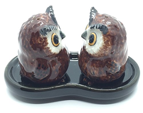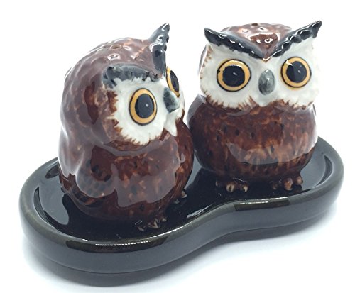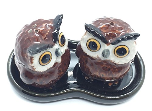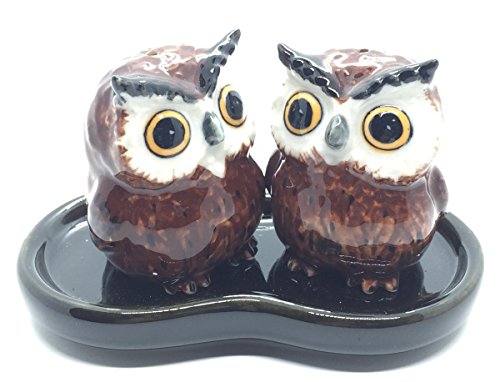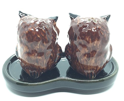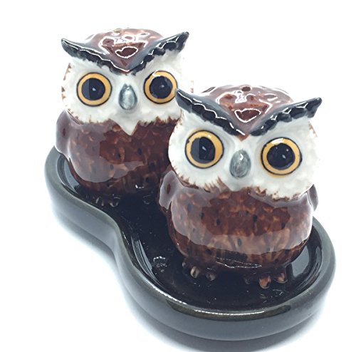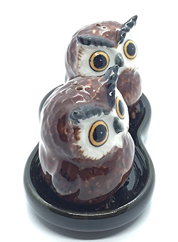 Cute Small Ceramic Owl Salt and Pepper Shakers Set Hand Painted T1 (Brown),Tiny salt and pepper shakers