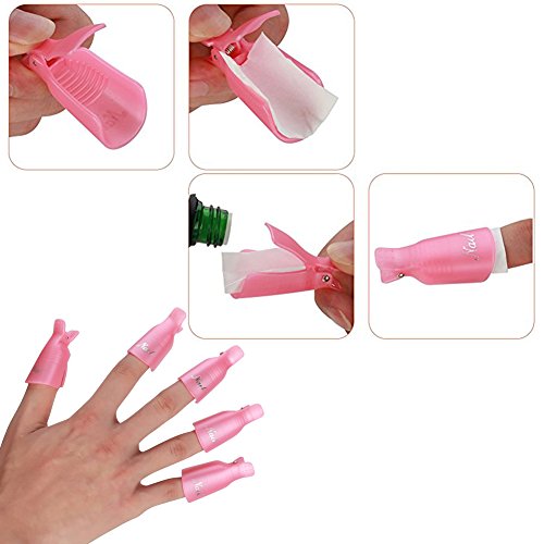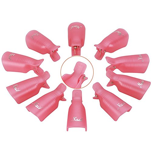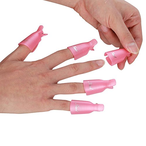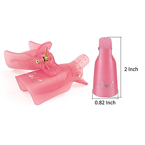 100% brand new and high quality; Soaking the pads with pure acetone,Putting the soaking pads on the artificial nail Quantity:10Pcs/Pack Clip Size: App 4.5 x 2cm Color:Pink Material: Plastic Weight: About 76g