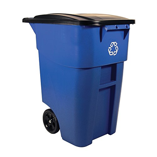 Rubbermaid Commercial BRUTE Heavy-Duty Rollout Waste/Utility Container, 50-gallon with Recycling Logo, Blue, FG9W2773BLUE