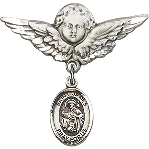 -. Title : Sterling Silver Baby Badge with St. James the Greater Charm and Angel w/Wings Badge Pin 1 1/8 X 1 1/8 inches