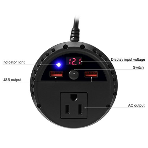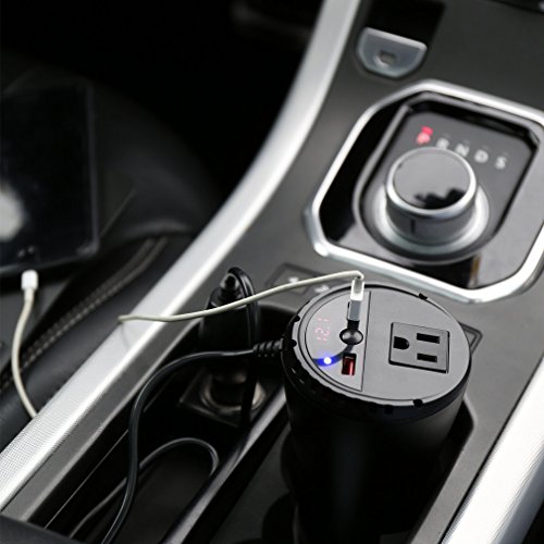 - [Multiple functions & compatibility] -- This cup charger could be used as a dual USB car charger. 1AC outlets create the perfect charging hub on the go for you as well as your family members. It is available for GPS, dash cam, seat heater or other portable appliances in your vehicle. 2 standard USB ports support iPhone 7 plus 7 6S 6 Plus/iPad Air Mini, Samsung Galaxy S7 S6 edge S5/Tab, Nexus 5X 6P, LG, Sony, Moto, Kindle and other USB devices.