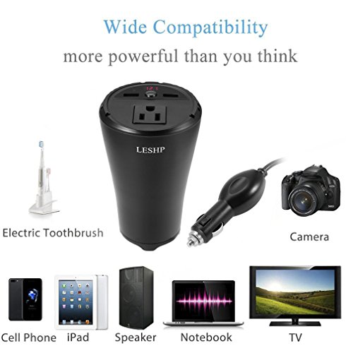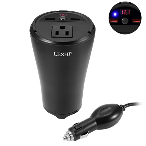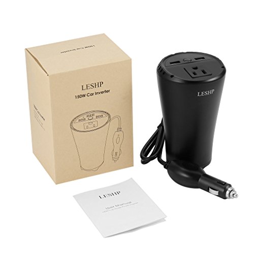 LESHP 150W Car Power Inverter DC 12V to 110V AC Outlet Cup Holder Car Converter Adapter with 4.8A Dual Smart Quick USB Charger