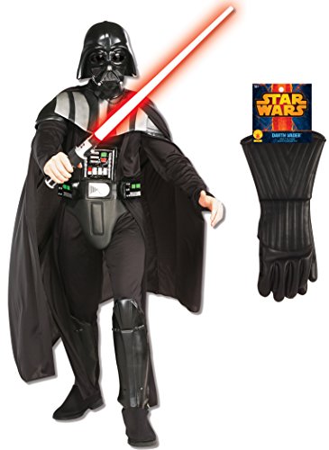 -. Binding : Apparel -. Brand : Rubie's -. Department : mens -. Feature : Officially licensed deluxe darth vader costume and lightsaber / Jumpsuit with molded body armor and collar, cape, belt, and mask / Lightsaber with red blades / Note: costumes are sized differently than clothing; review the Rubie's size chart and reviews to make the best choice and consider the next size up if you are at the top of the range / Rubie's offers star wars character costumes and accessories in sizes and styles for the entire family -. Genre : TV/Movie Characters -. IsAdultProduct : 0 -. Label : Rubies Costumes - Apparel -. Manufacturer : Rubies Costumes - Apparel -. Model : 820419 -. PackageQuantity : 1 -. ProductGroup : Apparel -. ProductTypeName : ADULT_COSTUME -. Publisher : Rubies Costumes - Apparel -. Studio : Rubies Costumes - Apparel -. Title : Rubie's Men's Star Wars Deluxe Darth Vader Costume with Lightsaber Bundle