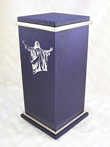 PERSONALIZED Custom Engraved Jesus Christ Cremation Urn Vault by Amaranthine Urns, made in the USA, Peyton RG Painted Silver (up to 250 lbs living weight) (Slate Grey)