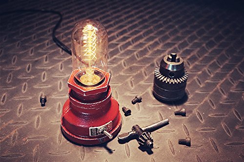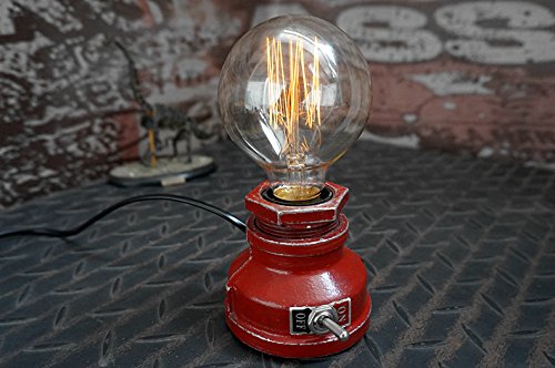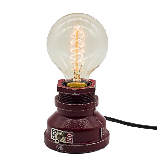 Y-Nut Loft Style Lamp, "Corporal Red" Steampunk Industrial Vintage Style, Water Pipe Table Desk Light With Dimmer, Aged Rustic Metal (Red)