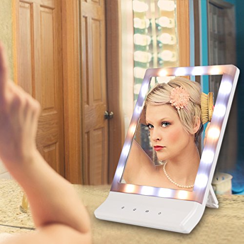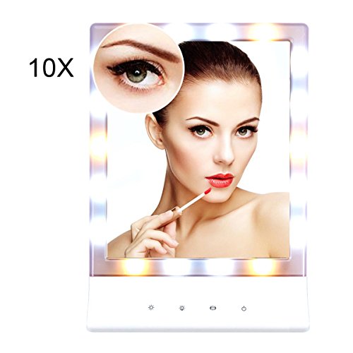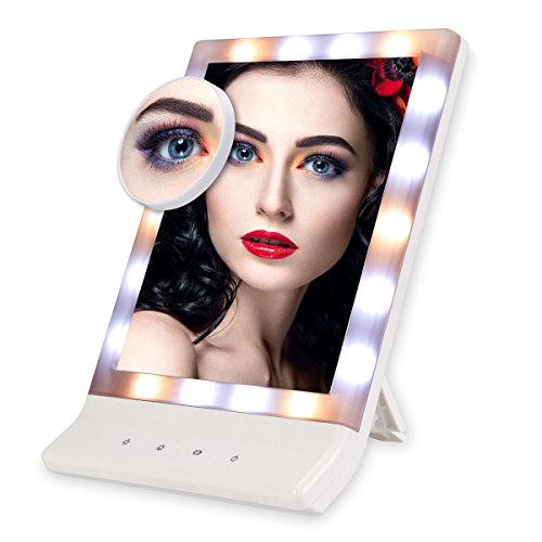 Euph Lighted Vanity Mirror 18 LED Makeup Mirror with Removable 10X Magnifying Mirror, Touch Screen and Multiple Illumination Settings