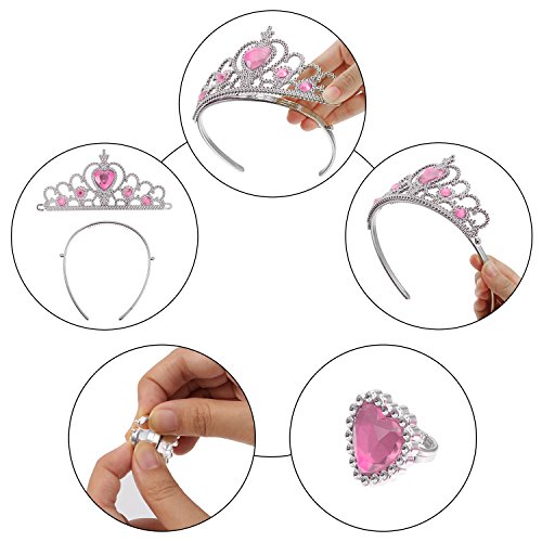 Exquisite workmanship: With exquisite workmanship and popular color, the dress-up set is suitable for serving as wonderful accessories to make you look more adorable and beautiful. Application: The princess crown set is made of good quality material; It is comfortable to wear, and can be applied for a long time, suitable for princess dressing up, performances, Christmas parties, birthday parties, outdoor festivals and other themed parties. Specification: Color: pink Necklace size: approx. 40 cm/ 15.7 inch in length Gloves size: approx. 30 x 7.5 cm/ 11.8 x 3 inch Ring diameter: approx. 1.6 cm/ 0.63 inch, the size can be adjusted Wand size: approx. 32 x 7.5 cm/ 12.6 x 3 inch Crown size: approx. 13 x 7.5 cm/ 5.1 x 3 inch Warm notes: 1. Please make sure that the sizes of these items fit you before buying. 2. The headband needs to be combined, simply bend the plastic crown part to attach to the plastic headband part. Package contents: 1 x Princess crown 1 x Wand 1 x Rhinestone ring 1 x Necklace 1 Pair of gloves 1 Pair of earrings 0
