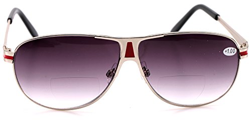 (SOOLALA)/Accessories/Eyewear/DIRECT FROM USA/SOOLALA Mens Moore Aviator Nearly Invisible Line Bifocal Sunglasses with Readers