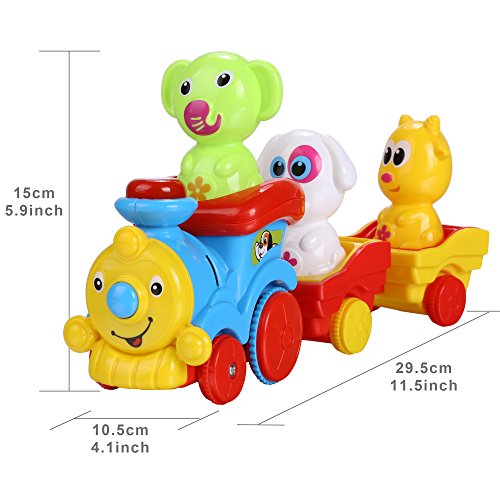 - Animal dimension: 4.5 x 4 x 7.5cm/1.8 x 1.6 x 2.9 inch (L x W x H),Locomotive dimension: 10.5 x 7 x 9.5cm/4.1 x 2.7 x 3.7 inch (L x W x H),Train total length: 29.5cm/11.5 inch