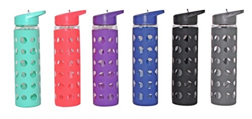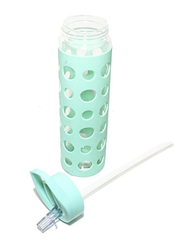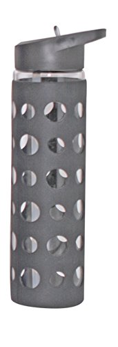 Silver One 18 oz Glass Sports Travel Water Bottle with Flip Straw Cap & Silicone Sleeve | Leak/Spill-Proof Portable Bottle | Twist Cap | (BPA FREE) - By Eco One
