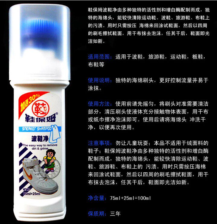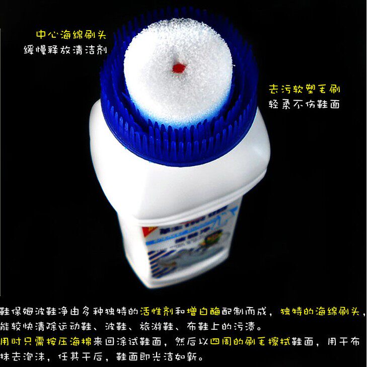 The shoes nanny wave shoes are made from a variety of unique active agents and whitening enzymes, which can quickly remove the stains on sports shoes, wave shoes, travel shoes and cloth shoes. When you use it, simply press the sponge back and forth to paint the upper, and then use the bristles around to wipe the upper, wipe the foam with a dry cloth, and let it dry as soon as the upper is clean.