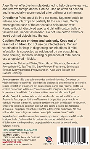 -. Feature : Dissolves ear wax and remove foreign debris / Can be used as often as needed / Now with Aloe and Baby Powder Scent