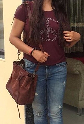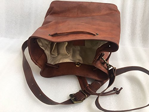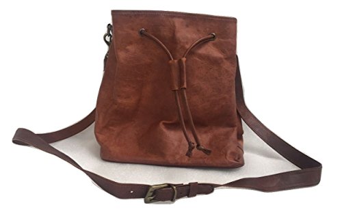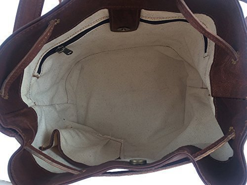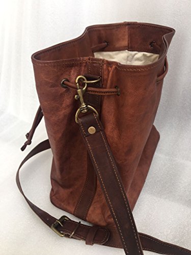 -. Feature : Material:High-quality genuine leather,white canvas lining ,Brass hardware. / Drawstring Closure, 26 inch drop adjustable shoulder strap. / Roomy internal:Drawstring closure,1 main compartment with a fabric pouch. with 1 inside wall zip pocket / Adjustable shoulder strap.Adjusting by the middle buckle. / Comfortably holds an iPad Mini,a wallet,a small cosmetic bag.and everday essentials Size:10"x10"x6"inches