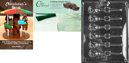 Cybrtrayd 45StK25GRBk-F028 Tea Rose Lolly Chocolate Candy Mold with Chocolatier's Bundle, Includes 25 Lollipop Sticks, 25 Cello Bags, 25 Green Twist Ties and Chocolatier's Guide