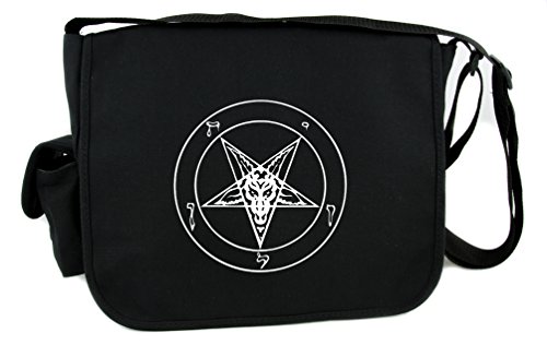 -. Brand : YDS Accessories -. Color : Black -. Department : mens, womens -. EAN : 0734009100941 -. Feature : Classic Sabbatic Baphomet Pentagram Goat Head / Cross Body Messenger Bag is made with a thick canvas material and nylon lining. / Comes with side cell phone pocket. Zipper Closure and Zipper Pocket on inside under flap. / Measurements : about 14" inches wide, 10" inches high. Side Width is 3" inches. / Adjustable Strap / Up to 26" strap drop / Great for carrying all the things you need for School, Work, or Leisure. -. ProductGroup : Shoes -. ProductTypeName : HANDBAG -. Title : Classic Sabbatic Baphomet Pentagram Goat Head Messenger Bag Cross Body Bags -. UPC : 734009100941