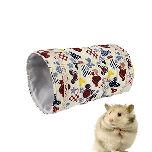 Description: - Cloth hamster tunnel, 2-way tube toy for small pet; - Fits inside any cage, with a comfort touching, keep pets clean and warm; - Warm bedding supplies in cold winter days as well; - Your pet will love to run, hide, crawl and sleep in this cute soft tunnel; - Great for hamsters, guinea Pigs and dwarf Bunnies, other small animals.