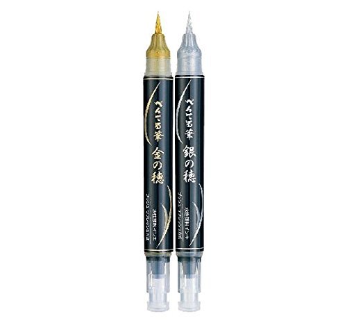 -. Title : Pentel XGFH Scientific Brush Pen, Gold & Silver, 2 pens per Pack(Japan Import) [Komainu-Dou Original Package]