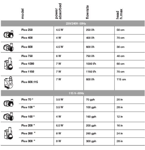Hydor's Pico Evolution Mini Pumps are a uniquely designed line of utility pumps that can be used in a variety of different applications including water circulation, table-top fountains, and waterfalls in terrariums. Available in a variety of different sizes and flow rates for any application.Feature